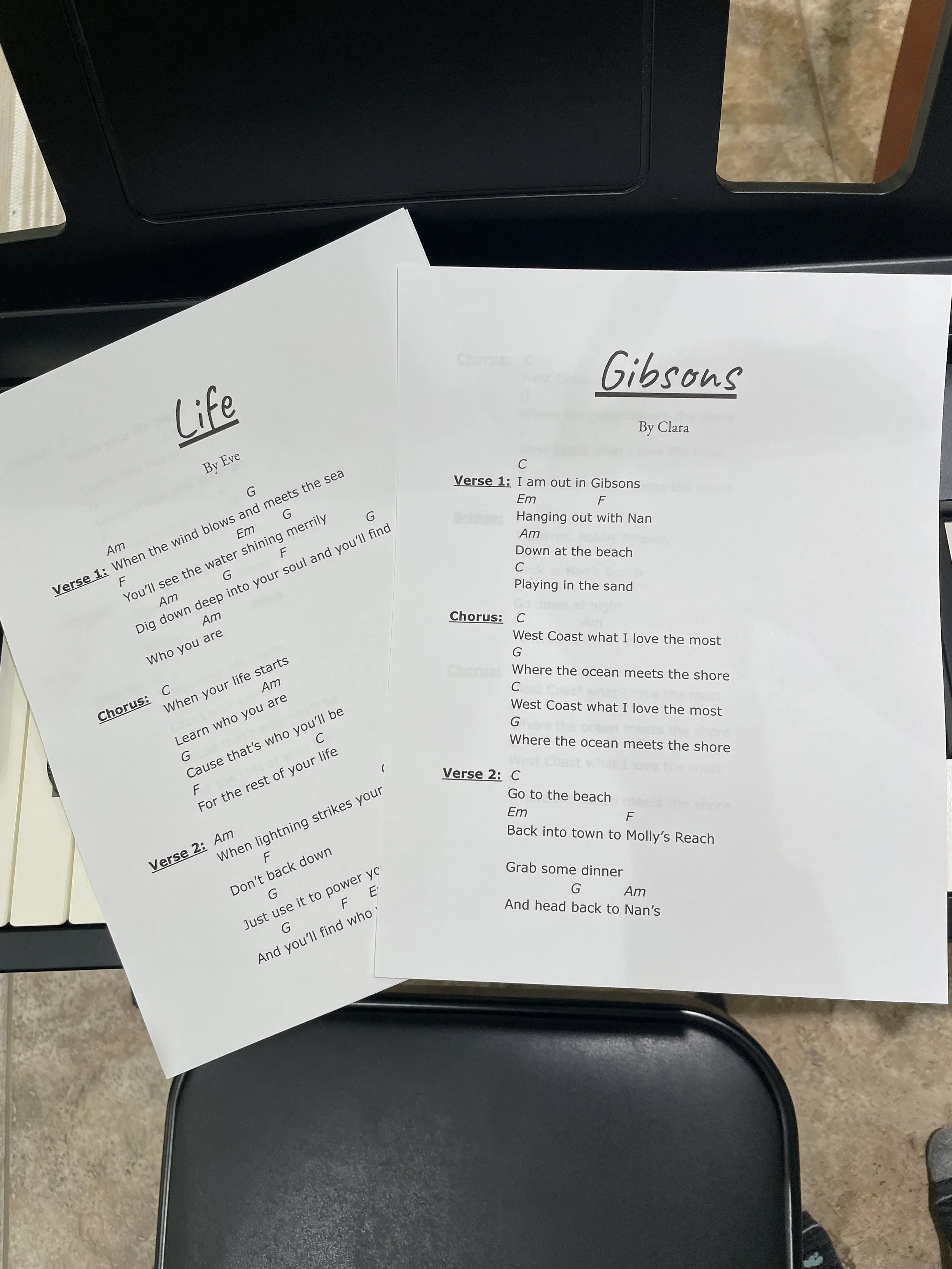 We wrote original songs and created official lead sheetsfor them.